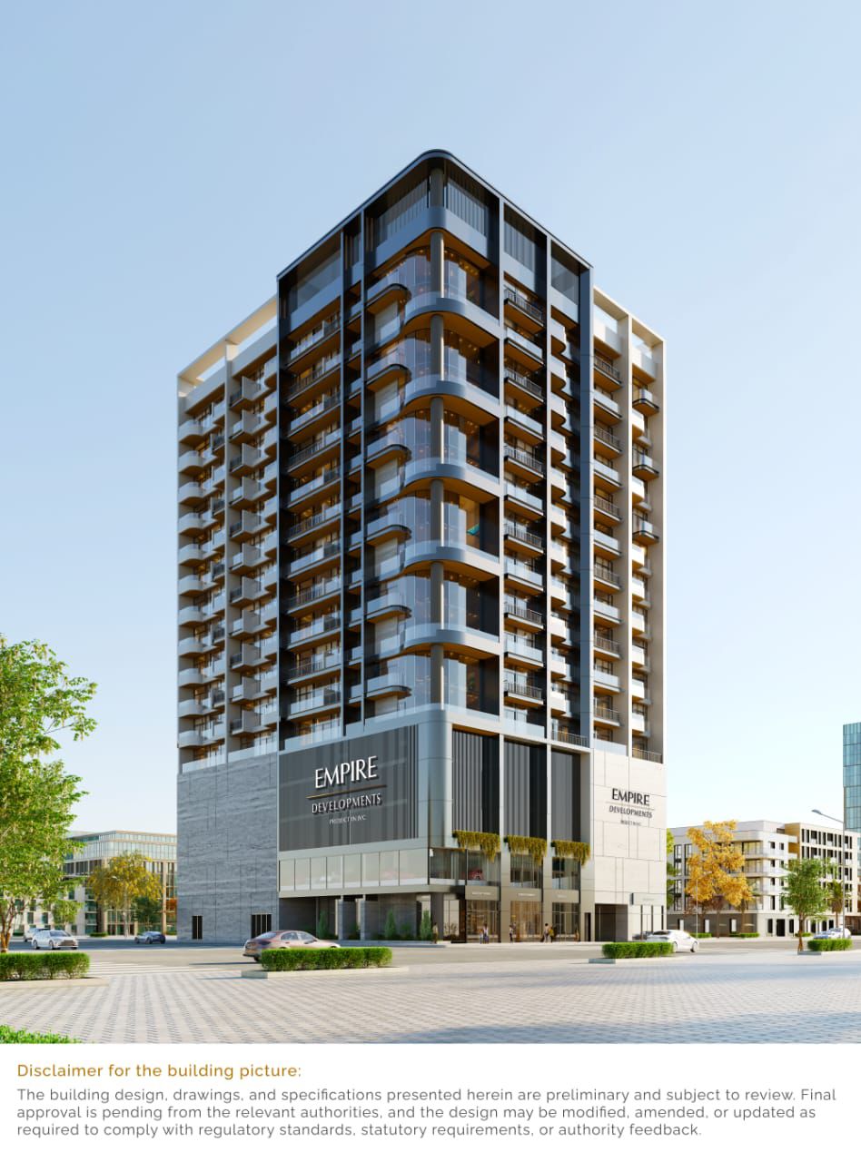 Empire Gardens by Empire Development is a thoughtfully designed residential project situated in the heart of the DubaiLand Residence Complex (DLRC), Wadi Al Safa 5, Dubailand. This 13-storey boutique tower offers a mix of studios, 1-, 2- and 3-bedroom apartments, making it ideal for families, professionals and investors looking for value, quality and connectivity.